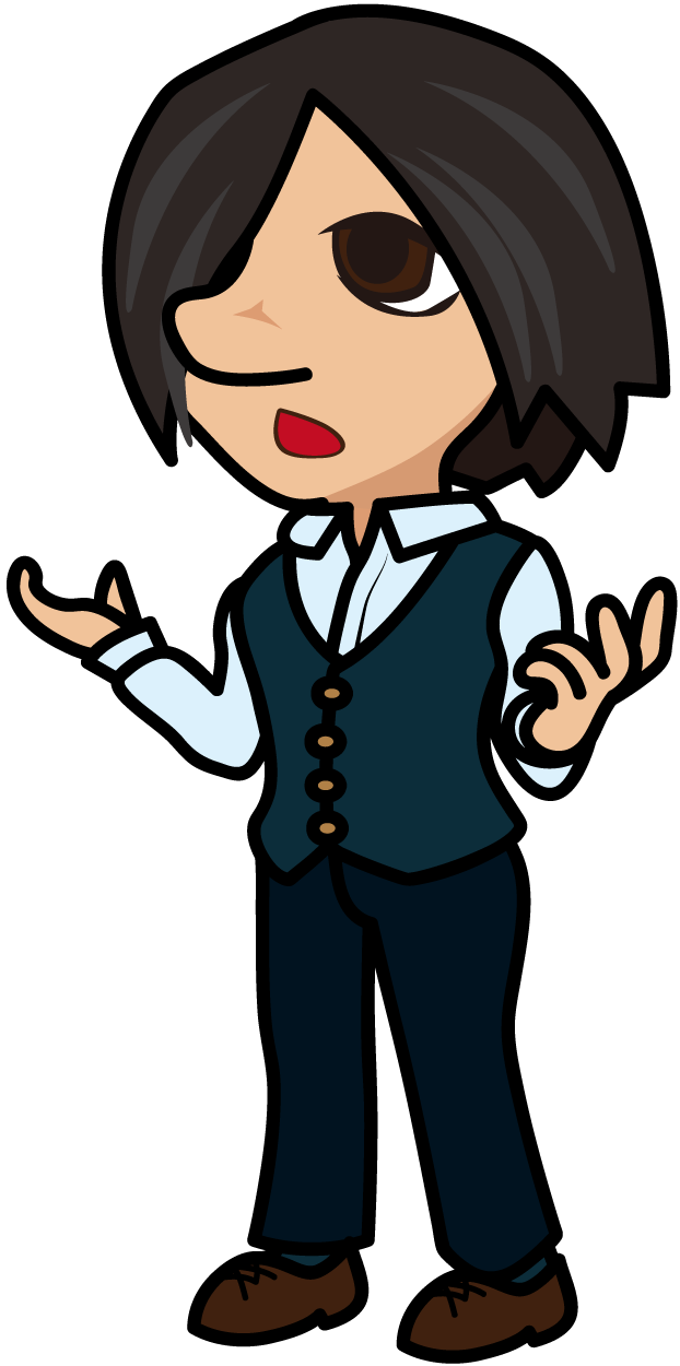 身振り手振りで説明するスマートなビジネスマン「はたさん」