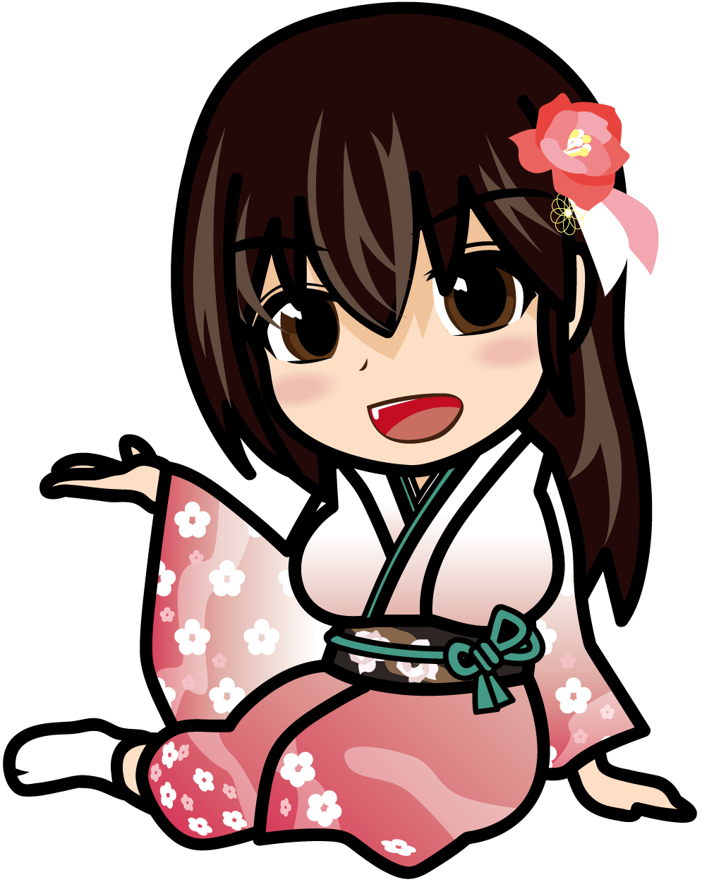 足をくずして座って案内する着物の女の子のイラスト素材「あーたむ」