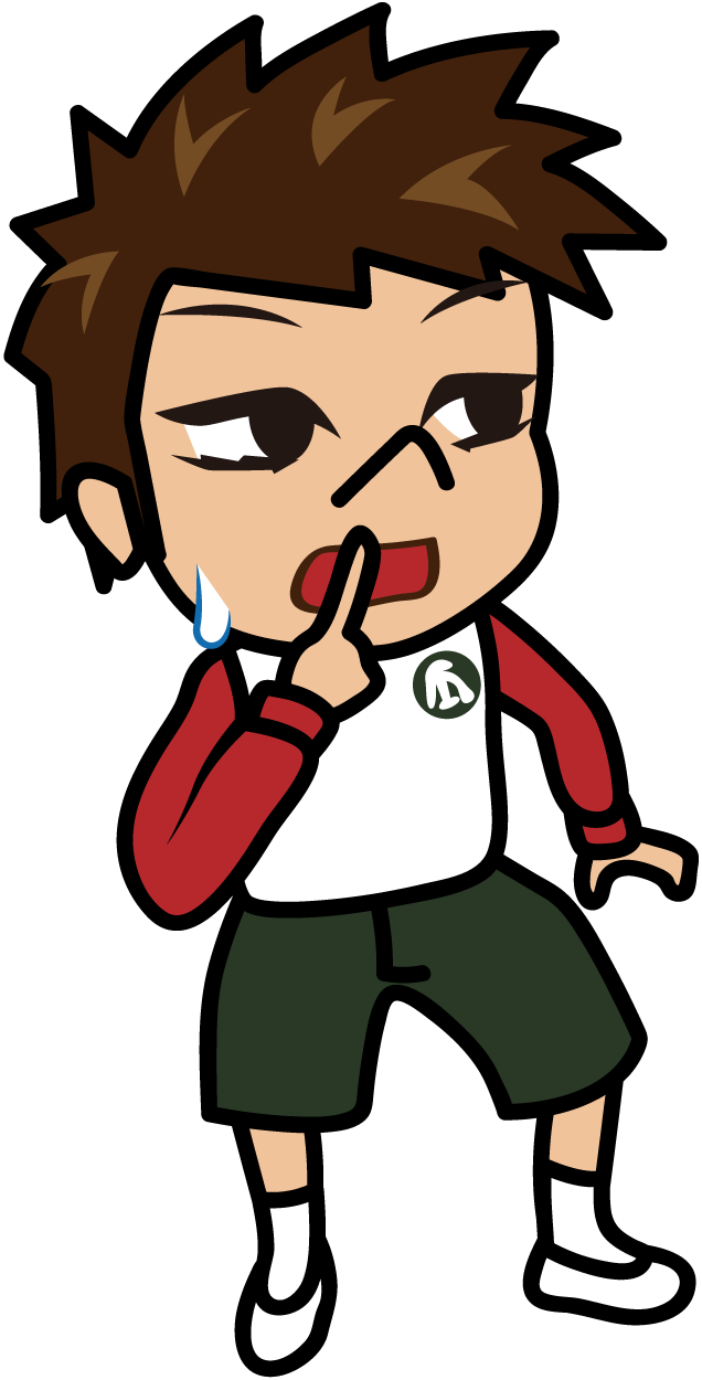 焦りながら人差し指を立てて黙るように促す小さな男の子「うりぼぅ」