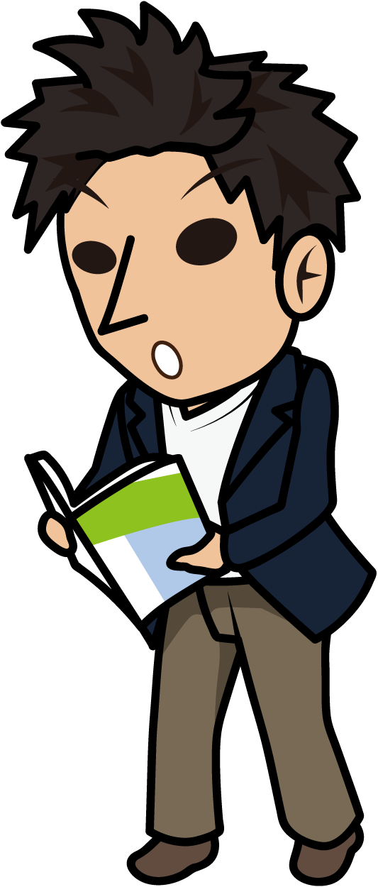 本を立ち読みして驚くビジネスマン「とびぃ」