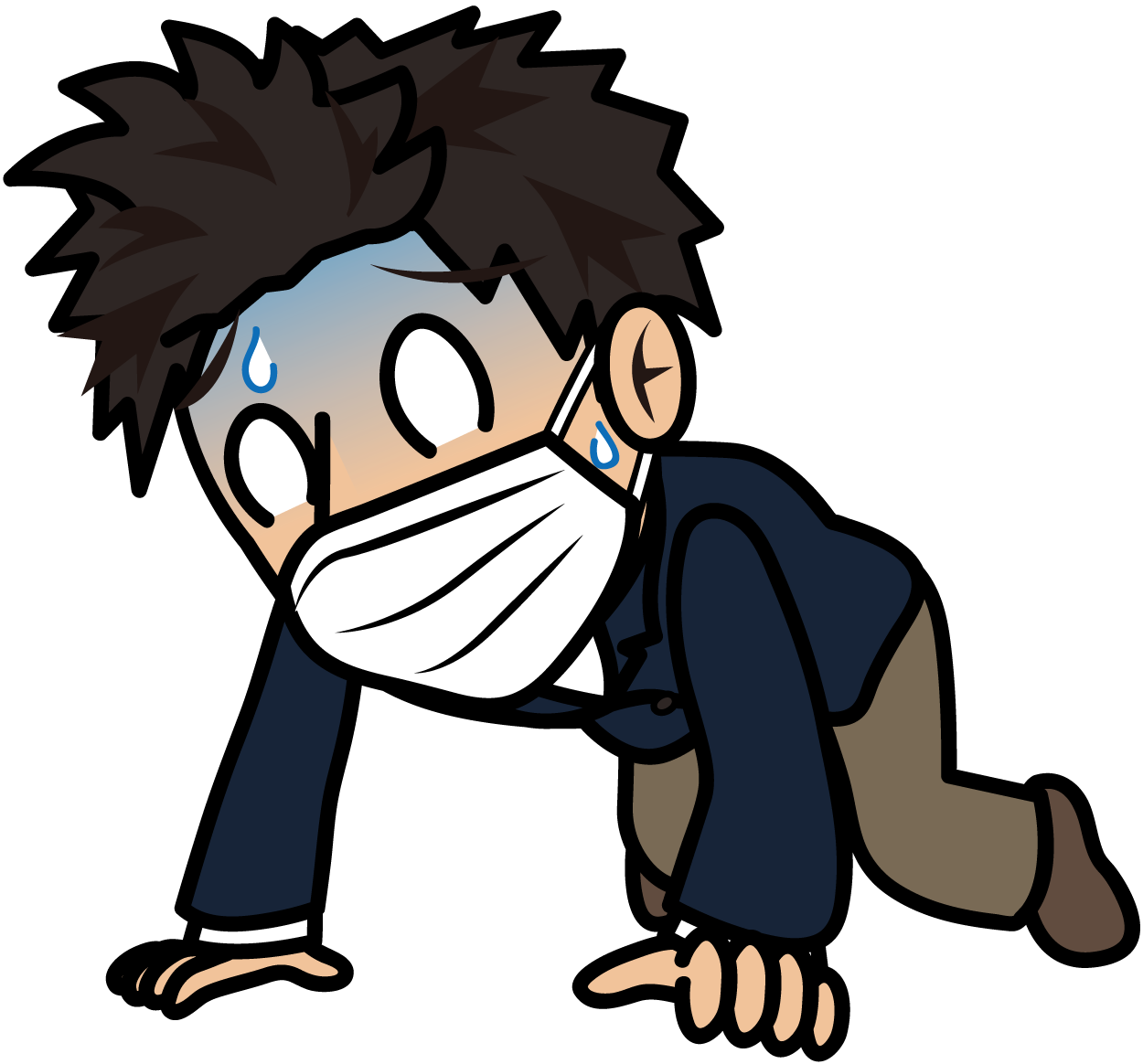 体調を崩して膝をつくマスクをしたビジネスマン「とびぃ」