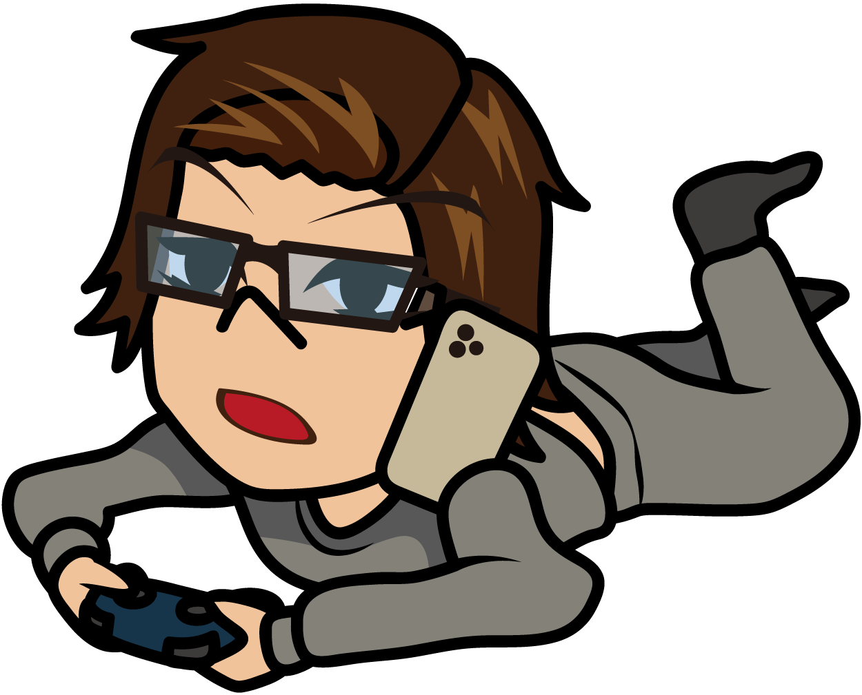 寝っ転がってゲームしながら電話するスウェットの男「うりぼぅ」