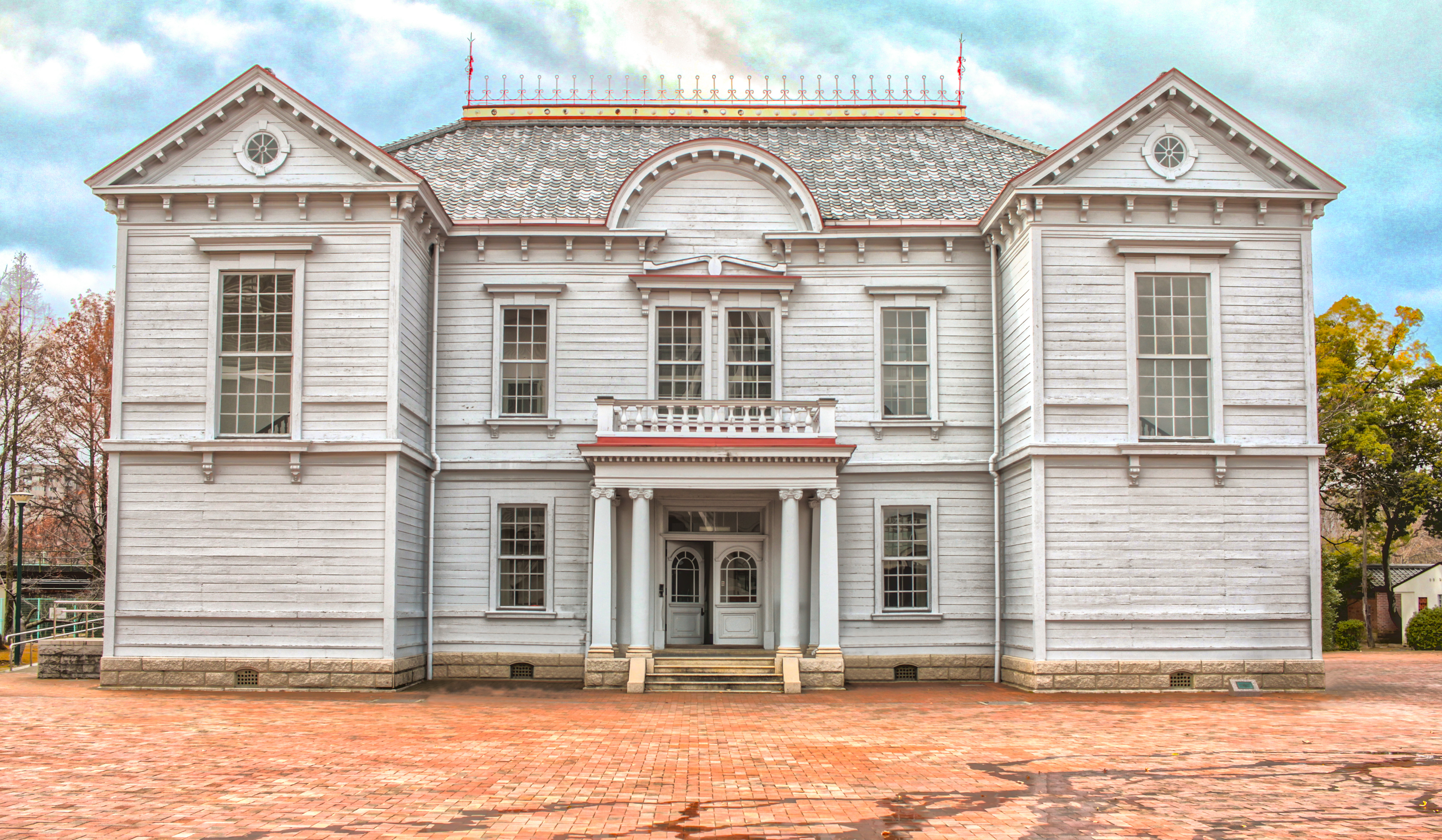 煉瓦造りの洋館と紅葉