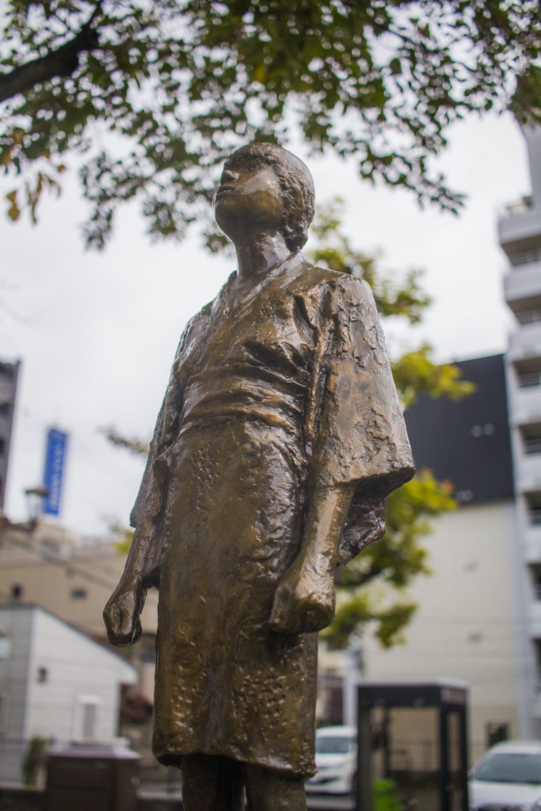 どこかを見つめる浴衣の女性像