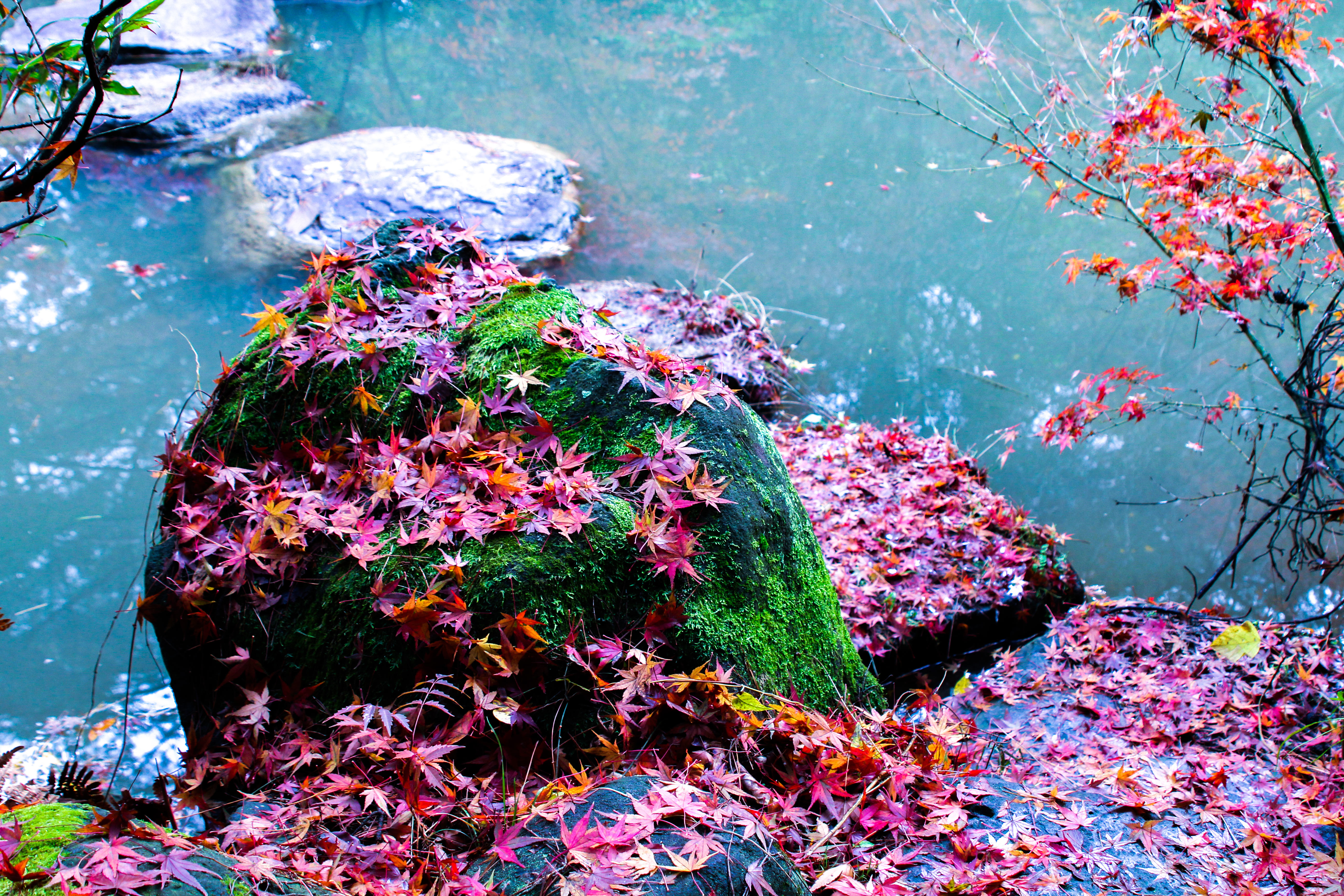 紅葉と苔